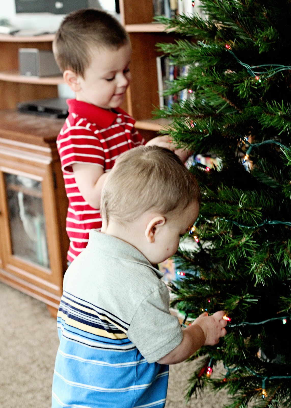 I had to help Drew with the ornaments, of course. He just wanted to lay them in the tree.